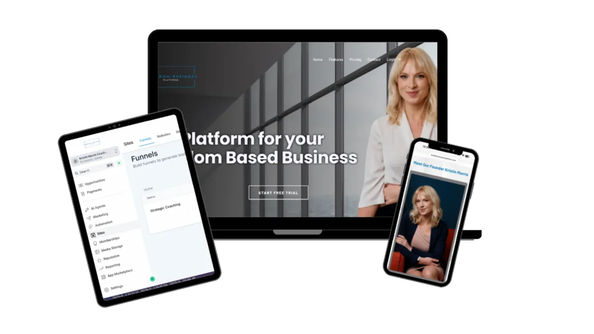 The system runs on the Freedom Business Platform — your all-in-one business hub. It replaces the fragmented collection of tools most coaches pay for separately, consolidates everything onto one dashboard, and connects every part of your business so that automations can actually work.